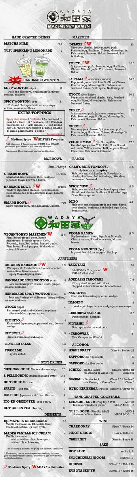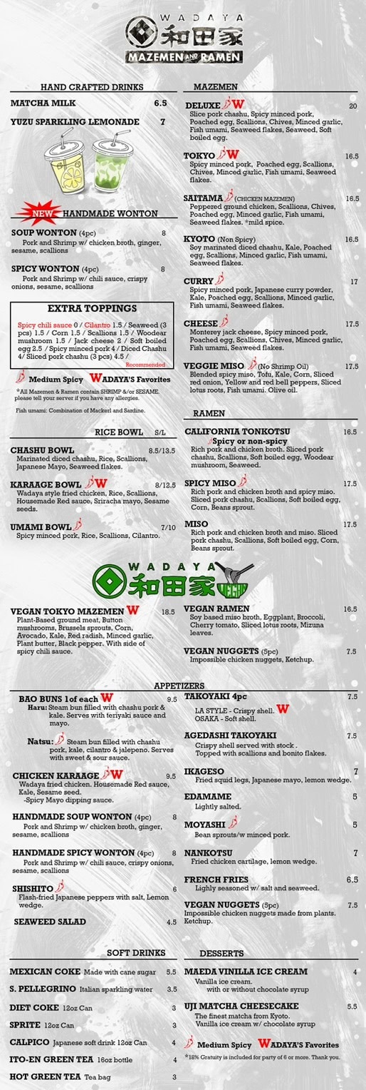 Slice pork chashu|Spicy minced pork|Poached egg|Scallions|Chives|Minced garlic| Fish umami|Seaweed flakes|Seaweed|Soft boiled egg